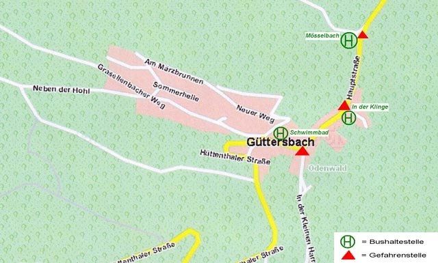 Durch an- und abfahrende PKWs entsteht ein Gefahrenpotenzial in der Güttersbacher Straße bzw. am Parkplatz für die zu Fuß zur Schule gehenden Schüler.